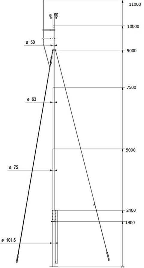 Конструкция мачты с одним комплектом тросовых растяжек выдерживает порывы ветра до 50 м/с. При использовании дополнительного комплекта растяжек, максимальные порывы ветра могут достигать 75 м/с.